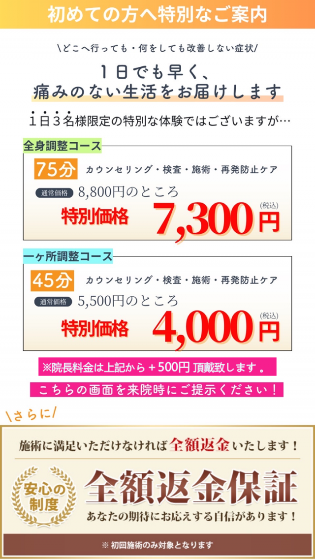 ✔突然のぎっくり腰にも対応してくれて感謝しています